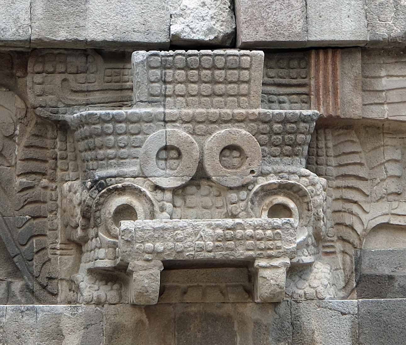 ↑〔羽毛の蛇のピラミッド〕(西暦200年〜378年)の〔トラロック神〕。