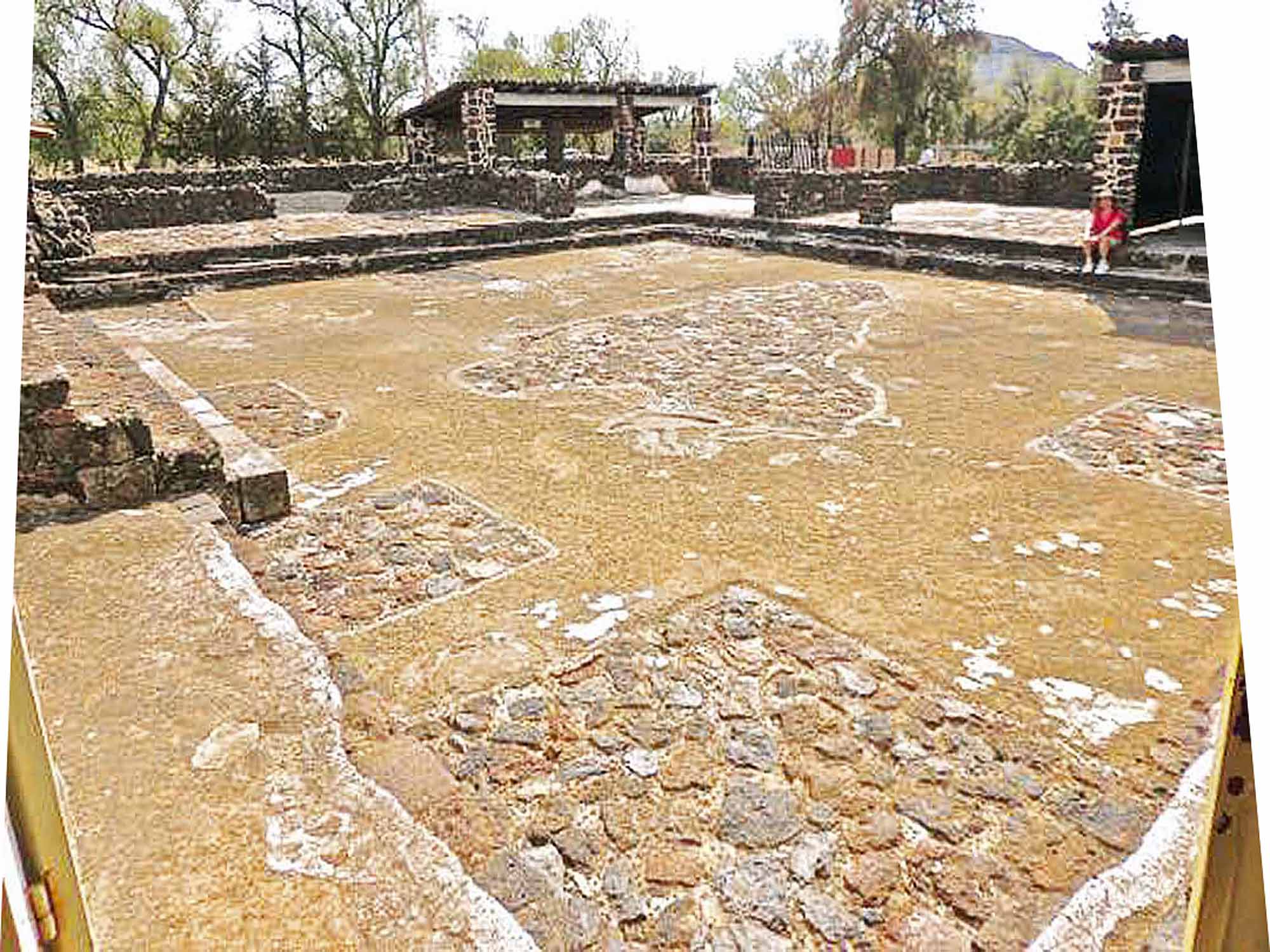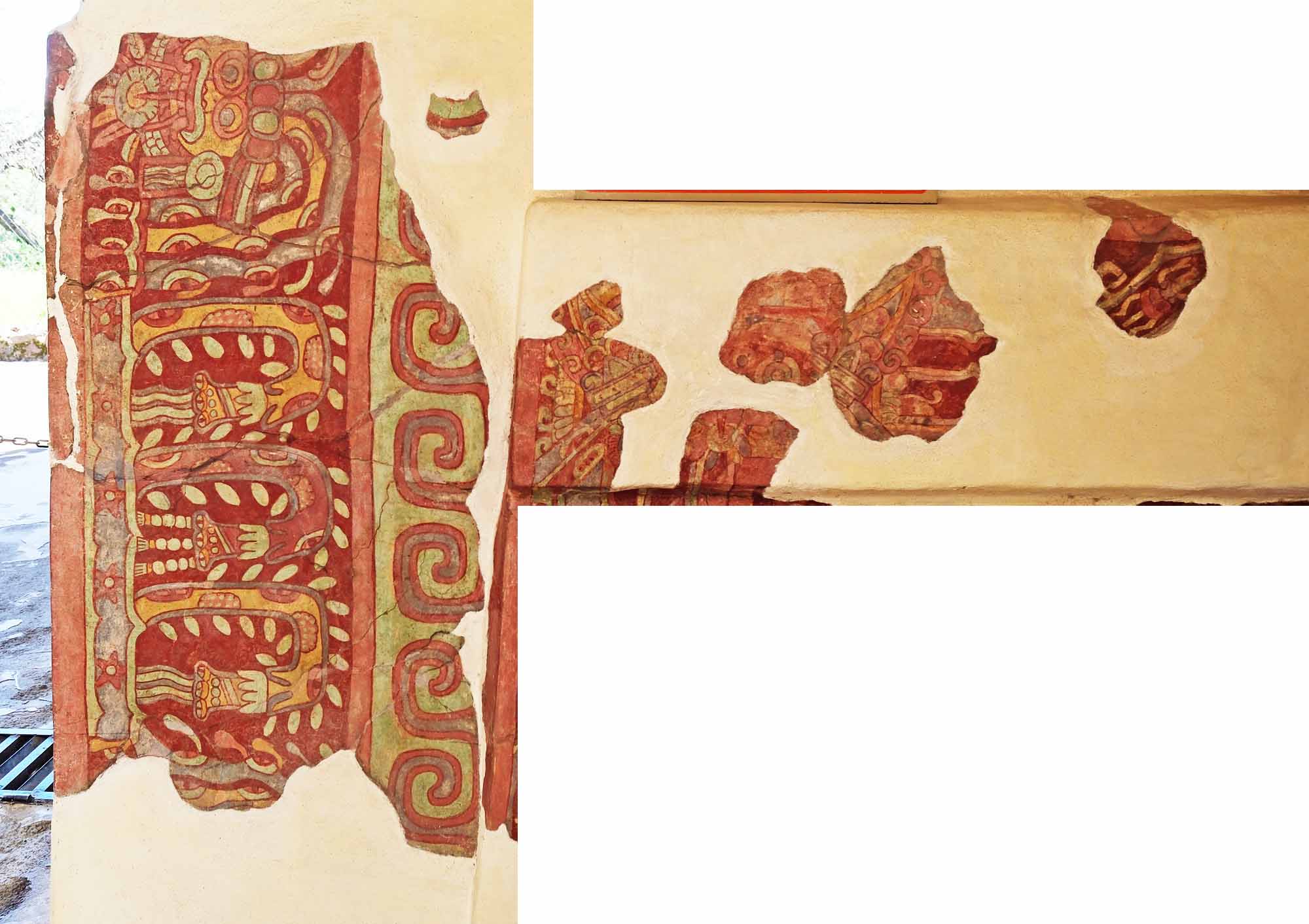 壁の下部の痕跡から、中庭2の4面全てが、〔水の山〕と〔トラロックの楽園〕で覆われていたと思われます。
