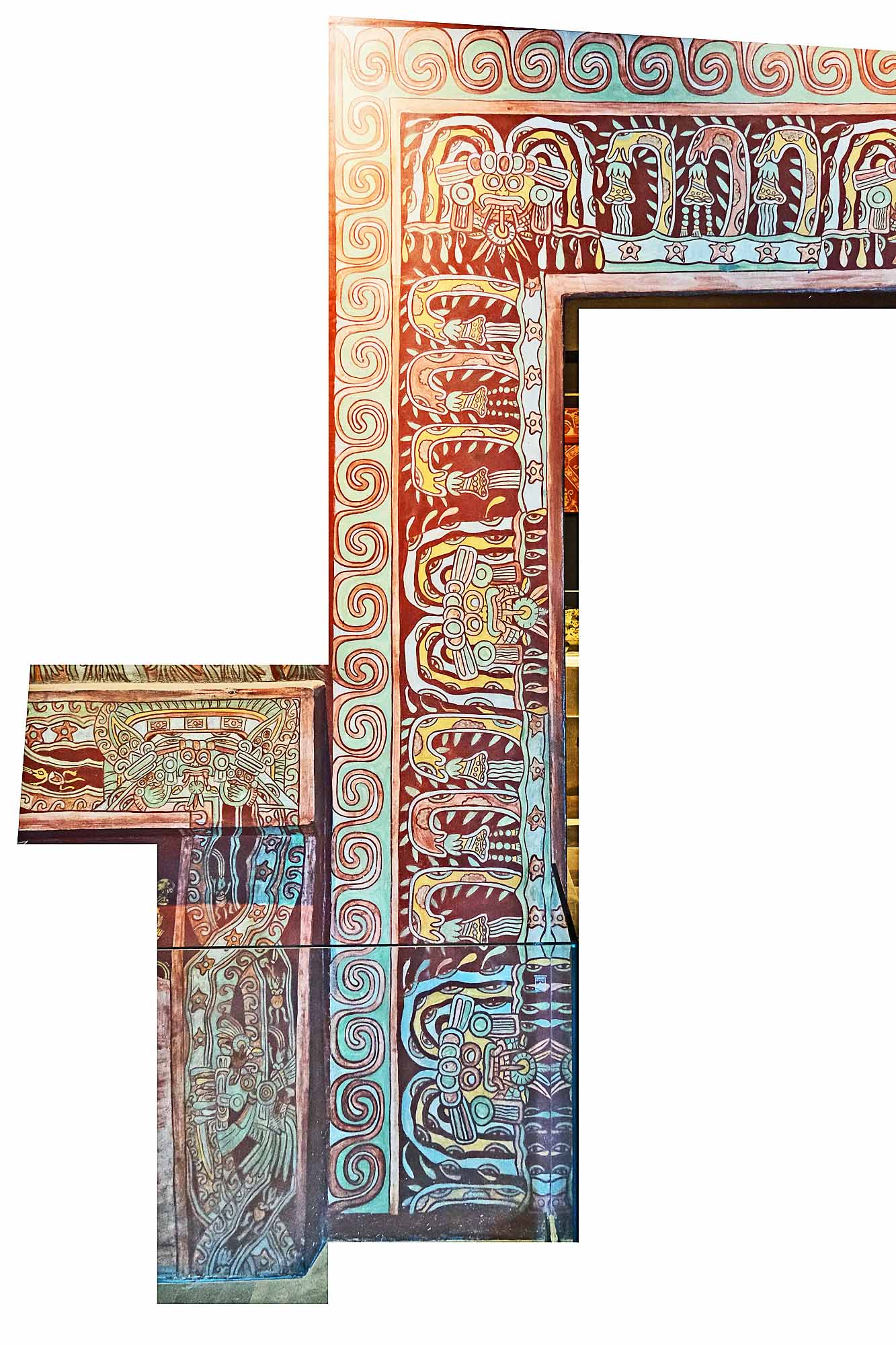 以下、2024年の現地の復旧壁、人類学博物館、及び2023年の東京の古代メキシコ展の再構成図の混合で見ていきます。まず、枠から。