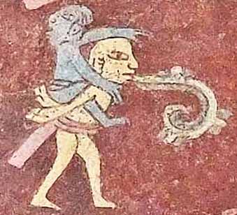 水と血は、同型の雫で表されます。人は命の血を神々に捧げ、神々は人に生命の水をもたらします。メソアメリカには、はるか昔から、自己犠牲の思想がありました。テオティワカンも例外ではなかったようです。