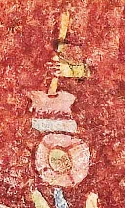 中央右の壁画の拡大写真です。香の袋を下げていますので、司祭です。右へ歩いています。