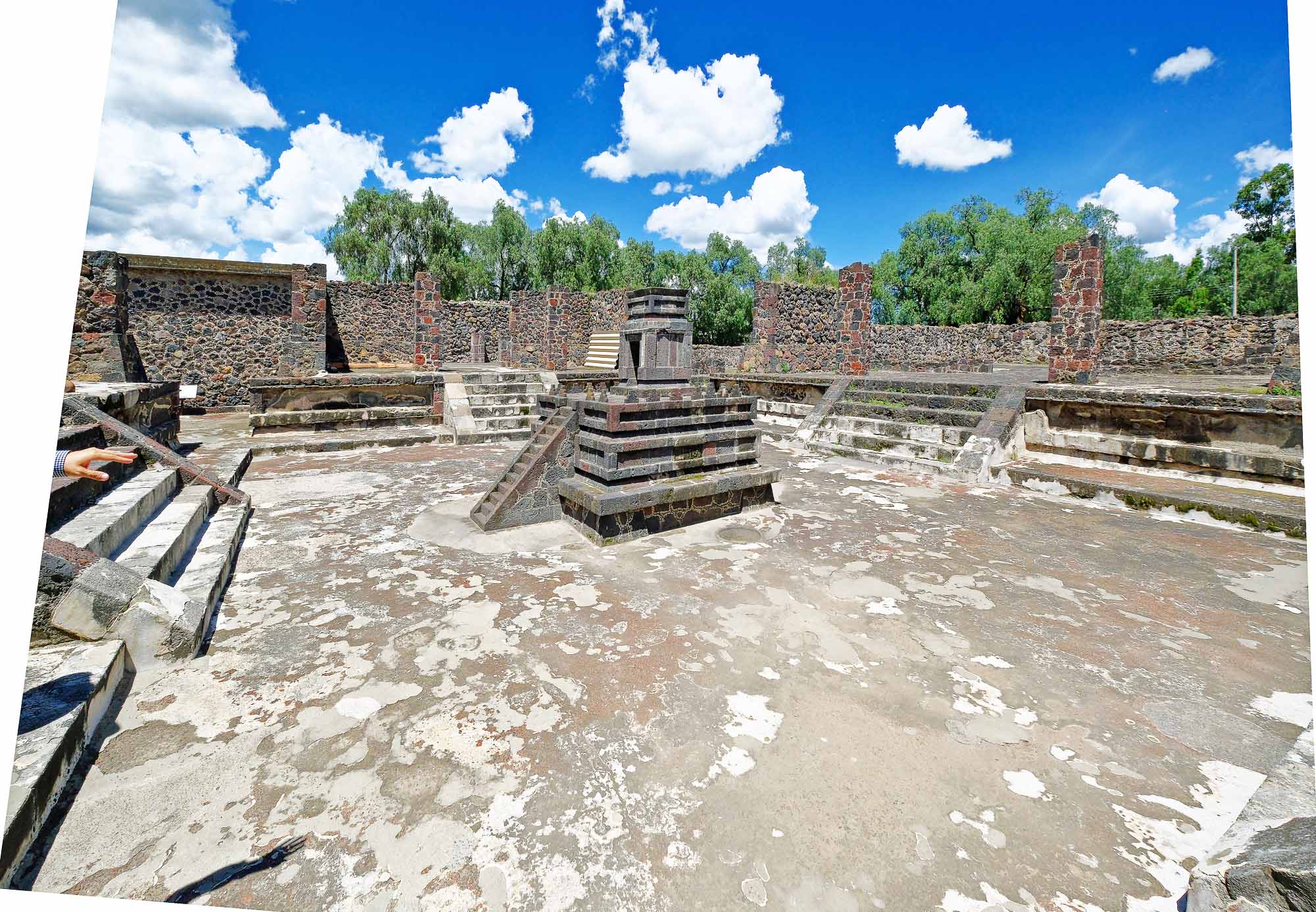 4神殿構造で、西が正面です。中央祭壇には色と意匠の一部が残っています。他の要素は不詳です。
