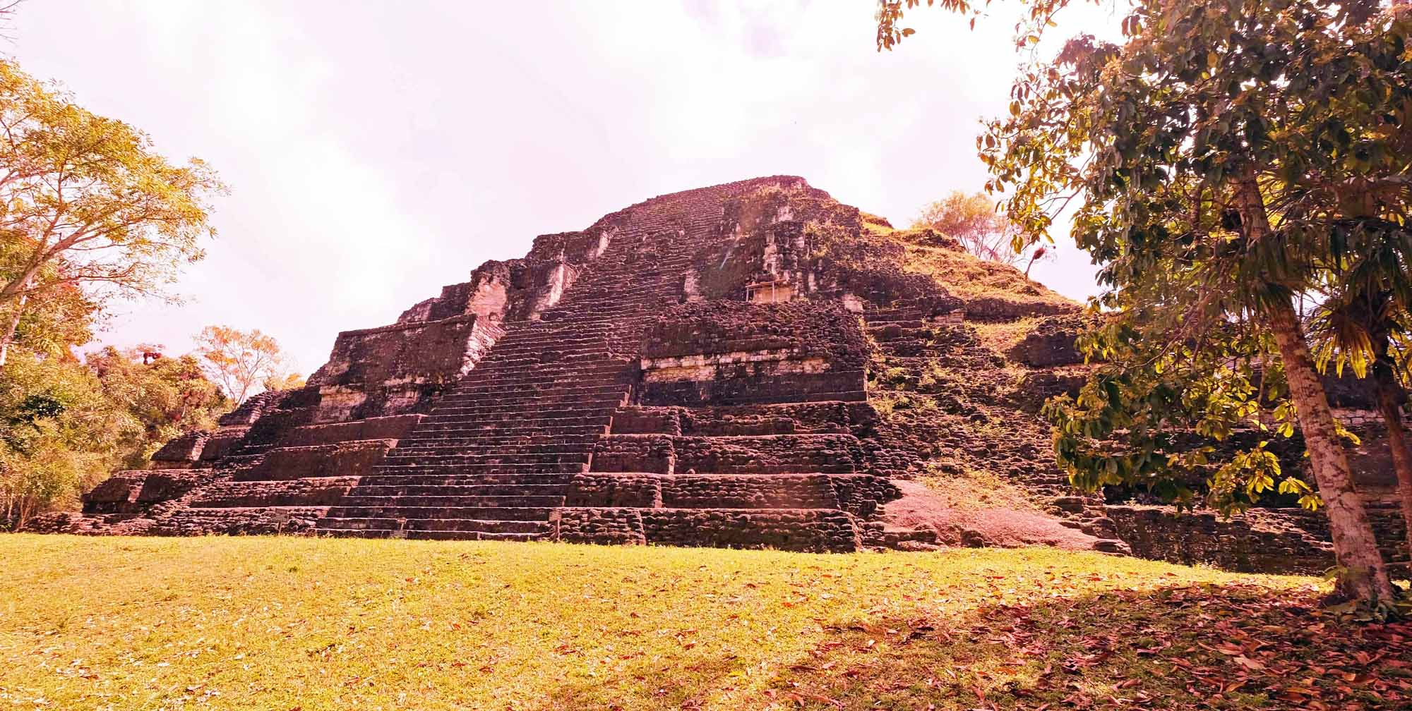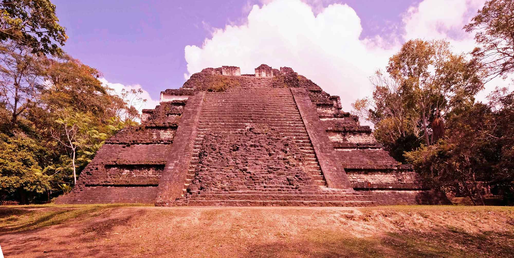 大ピラミッドはおそらく、ティカルで最古の石造建築物です。紀元前600年の高さ3m、南北23mの神殿を覆いながら、4回の更新を受けて西暦250年に高さ31m、南北72mまで巨大化されました。各層の増築時に墓室が設けられました。盗掘により詳細は不明です。西面階段の上部の左右に、巨大なジャガーの仮面があります。