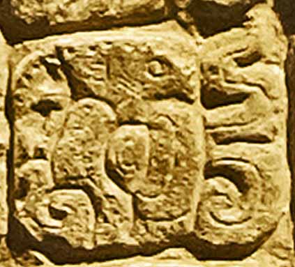 広大なペテン地方には数多のマヤ都市国家があります。統一国家はありませんので、マヤ全域からの代表という立場はありえません。では、どの都市国家だったのでしょうか。一つの微かなヒントが論文で、提示されています。〔柱の広場〕の一つの壁画剥片のジャガー神の耳の上の膨らみが、ティカルの石碑29(西暦292年建立)のそれにとても似ている、というのです。