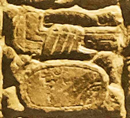 ティカルで、ほとんど全く損傷や溶解がない石碑は稀です。11年間しか風雨に晒されていなかったからでしょう。表面の羽毛の下の局面に、上の写真の3枚目に彫り込みがあります。絵文字の内容からして、どちらかが〔シヤフ・カック〕で〔槍投げフクロウ〕です。マルカドールは、6C-16の領主がこの二人を表現した彫刻です。