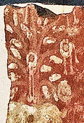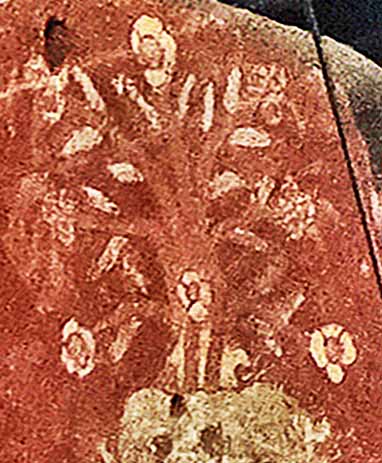 Archaeologists suggest that there must have been three other nearly identical statues. The bottom of the photo above shows the remains of eight trees. The depictions of the roots are nearly identical, but the flowers and the base of the trunks are all different.