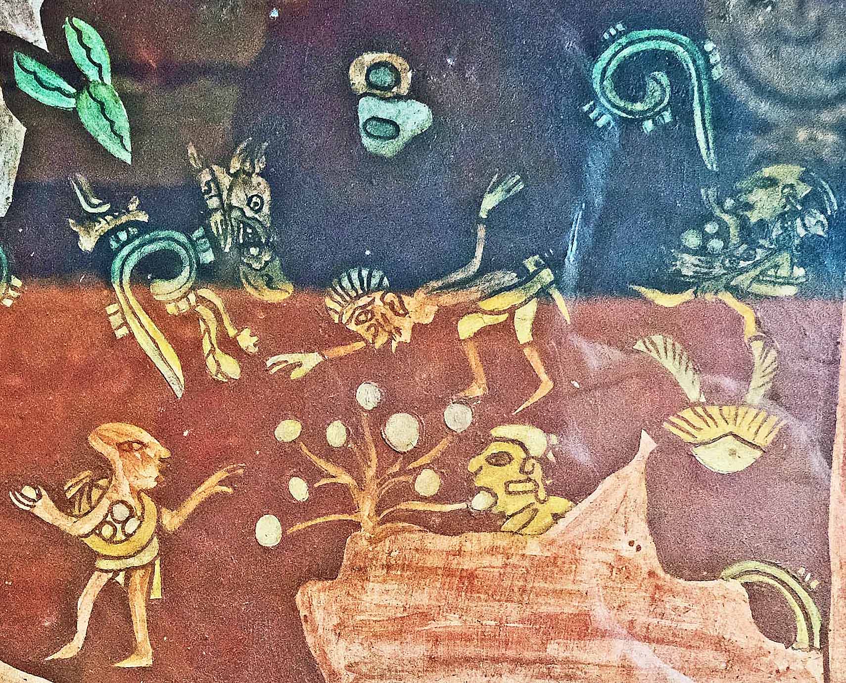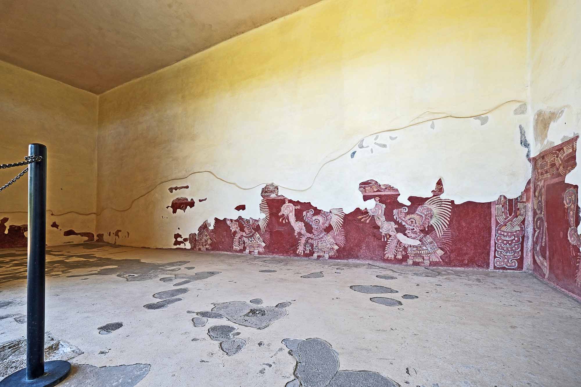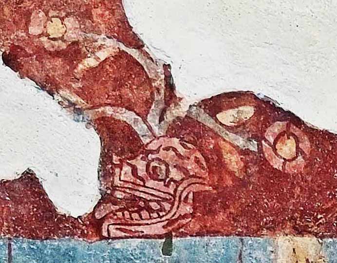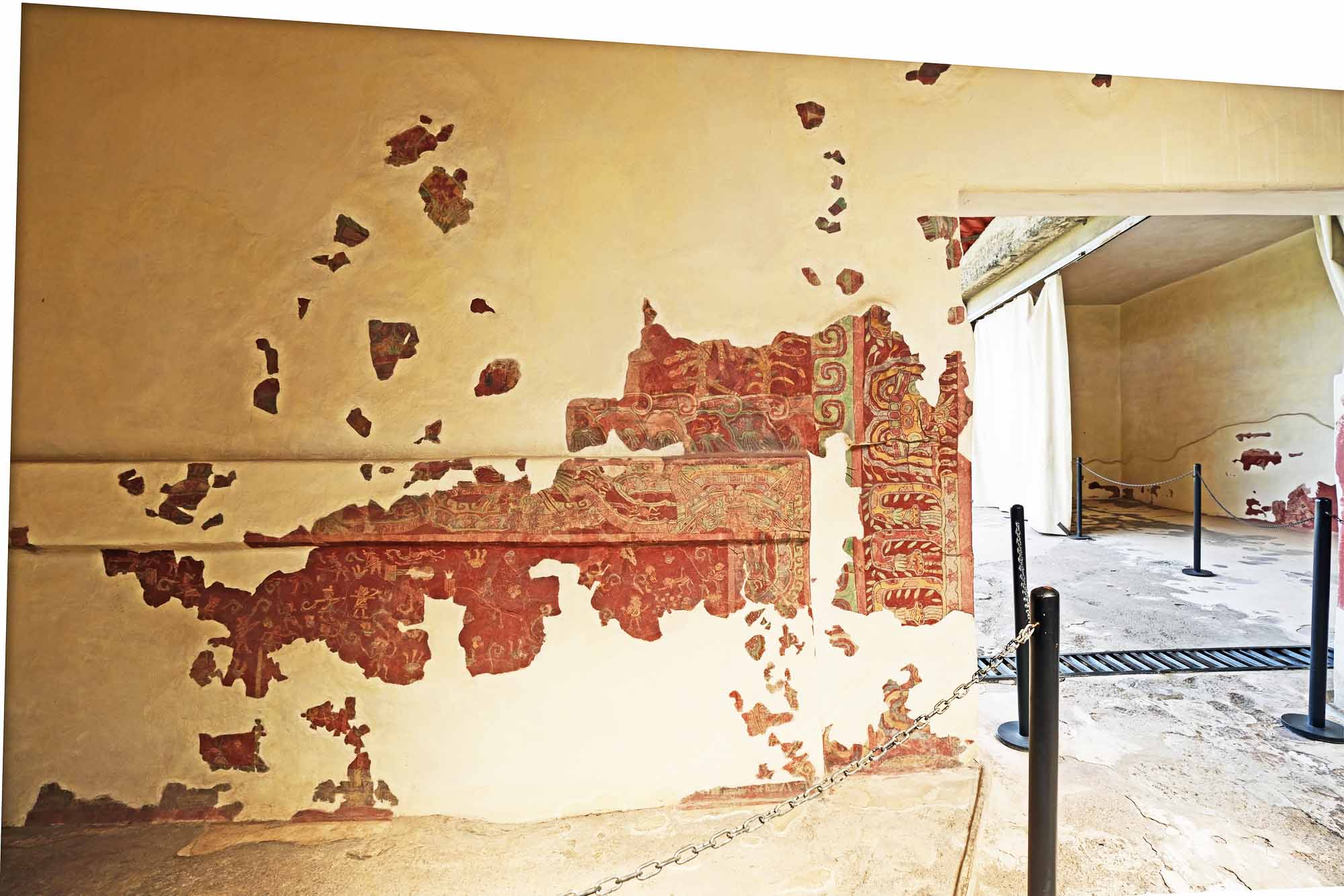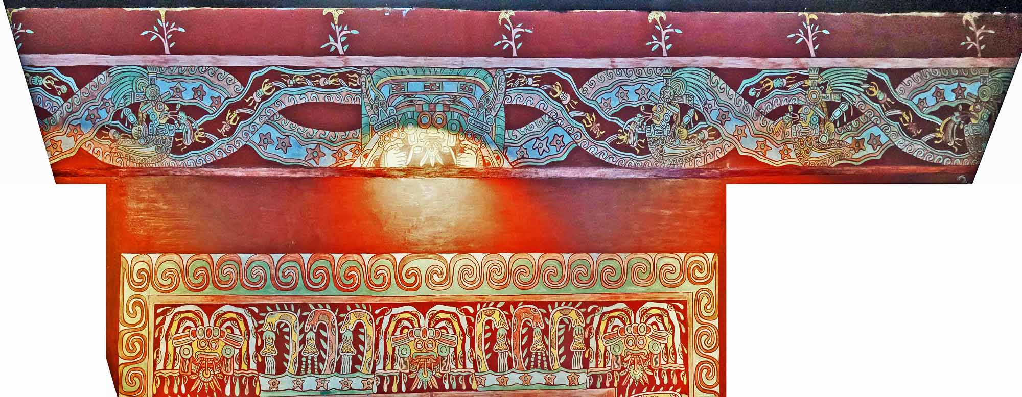 Traces in the lower part of the walls suggest that all four sides of Courtyard 2 were covered with the tree of Tlaloc and the Paradise of Tlaloc.