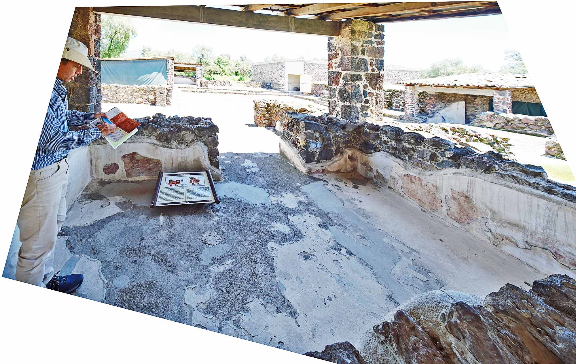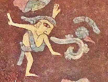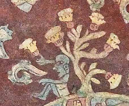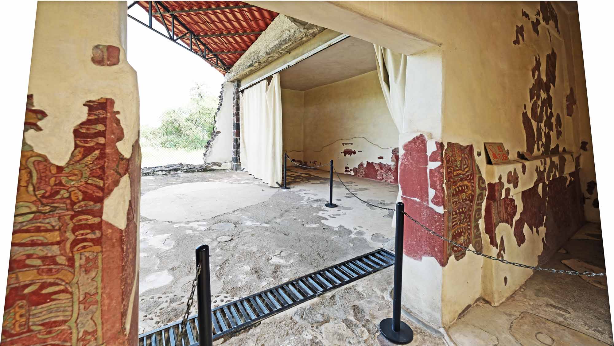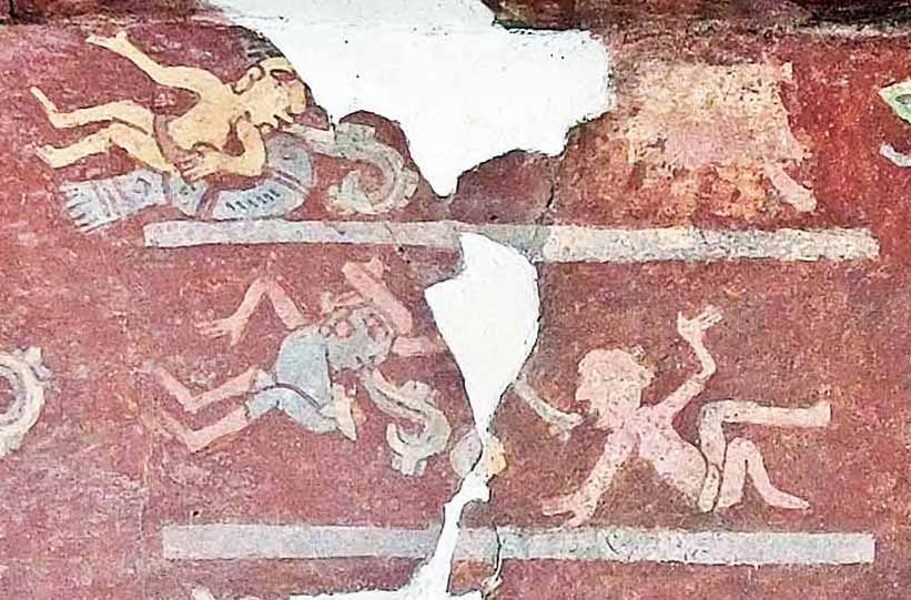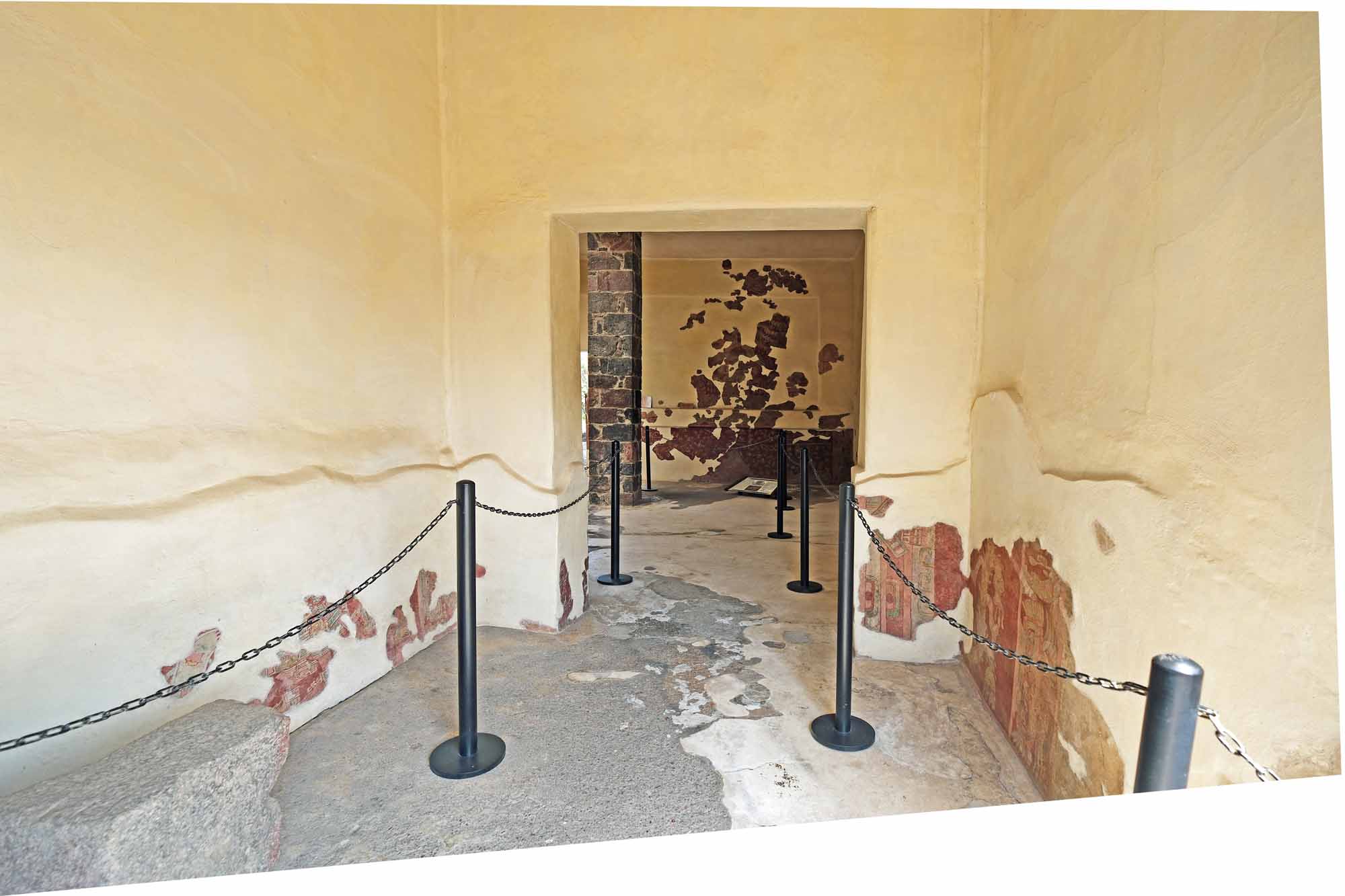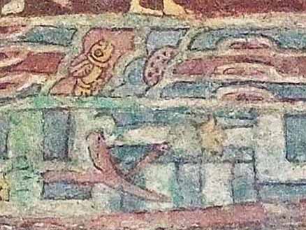 Traces in the lower part of the walls suggest that all four sides of Courtyard 2 were covered with the tree of Tlaloc and the Paradise of Tlaloc.