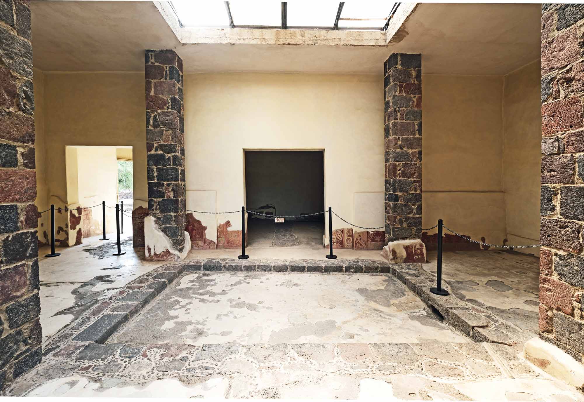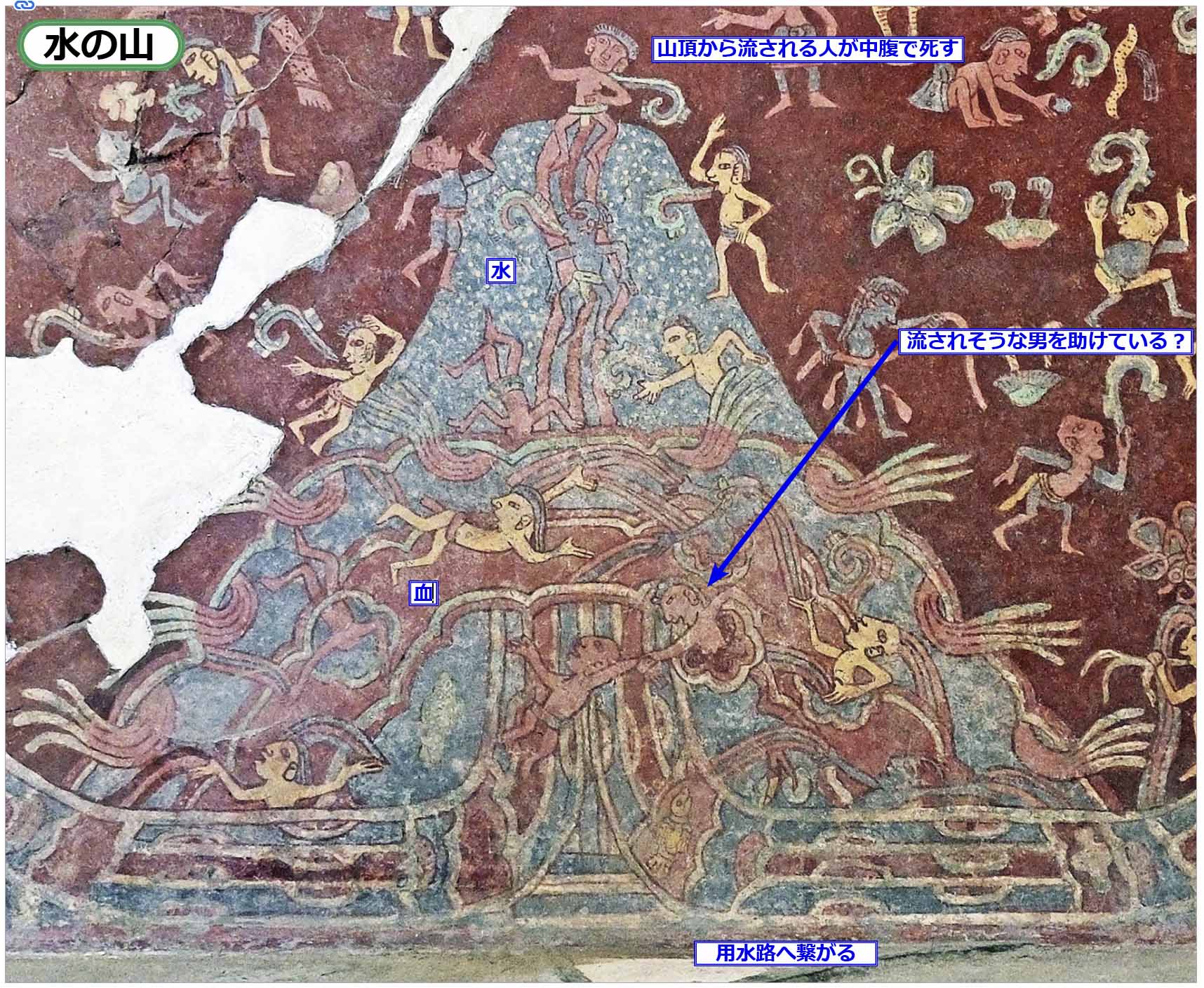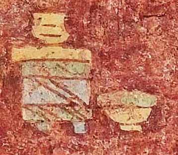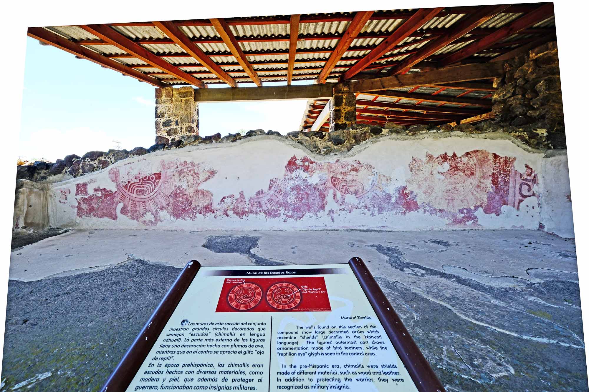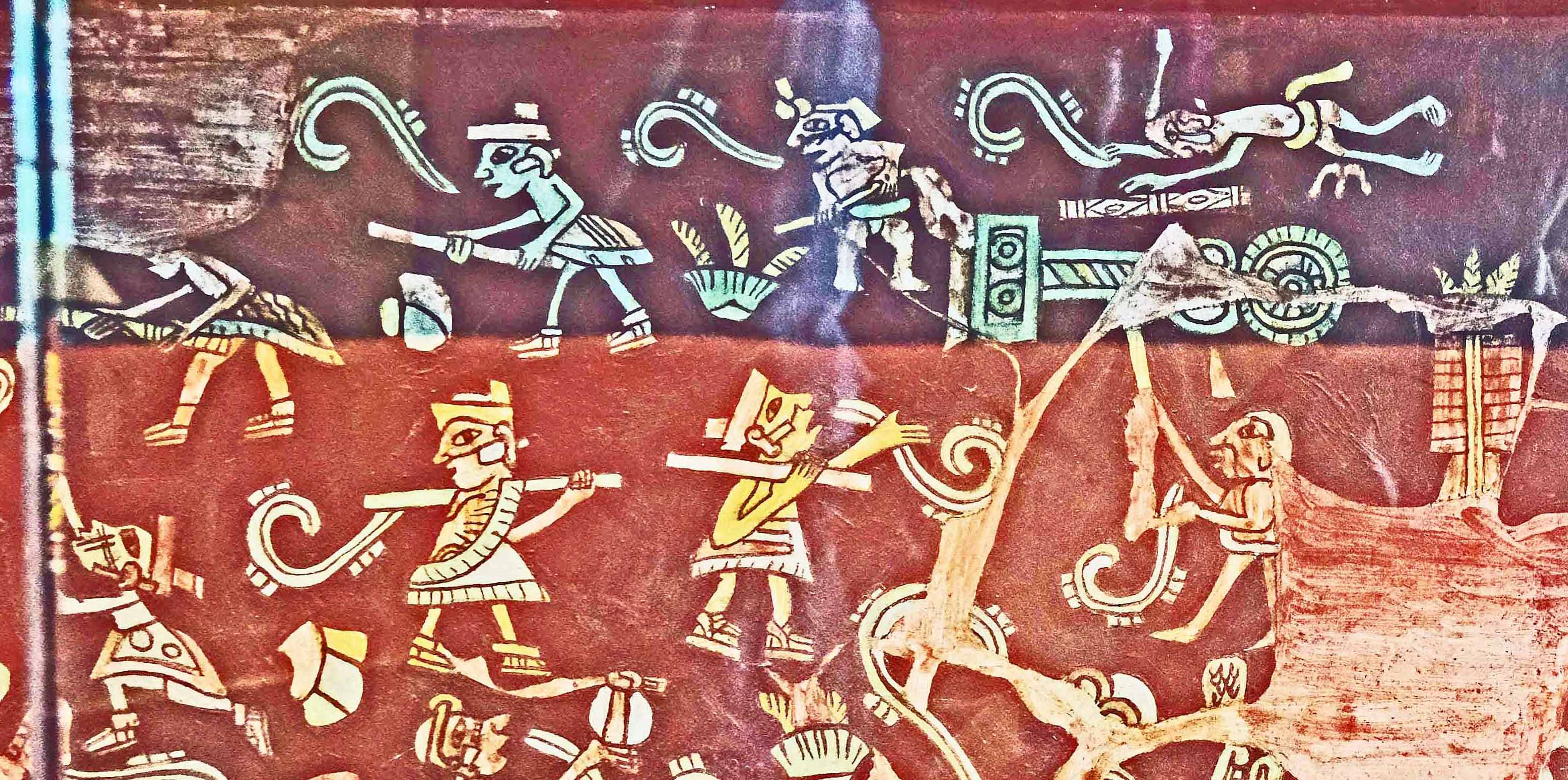Traces in the lower part of the walls suggest that all four sides of Courtyard 2 were covered with the tree of Tlaloc and the Paradise of Tlaloc.