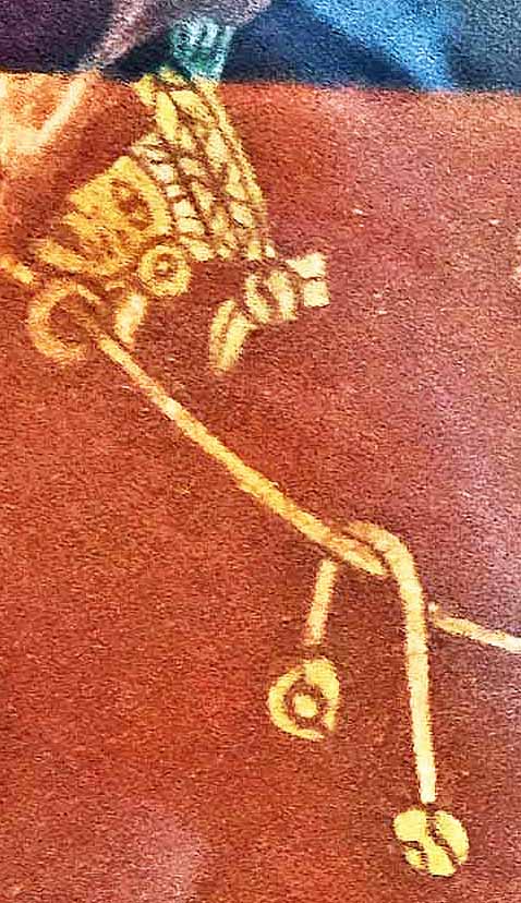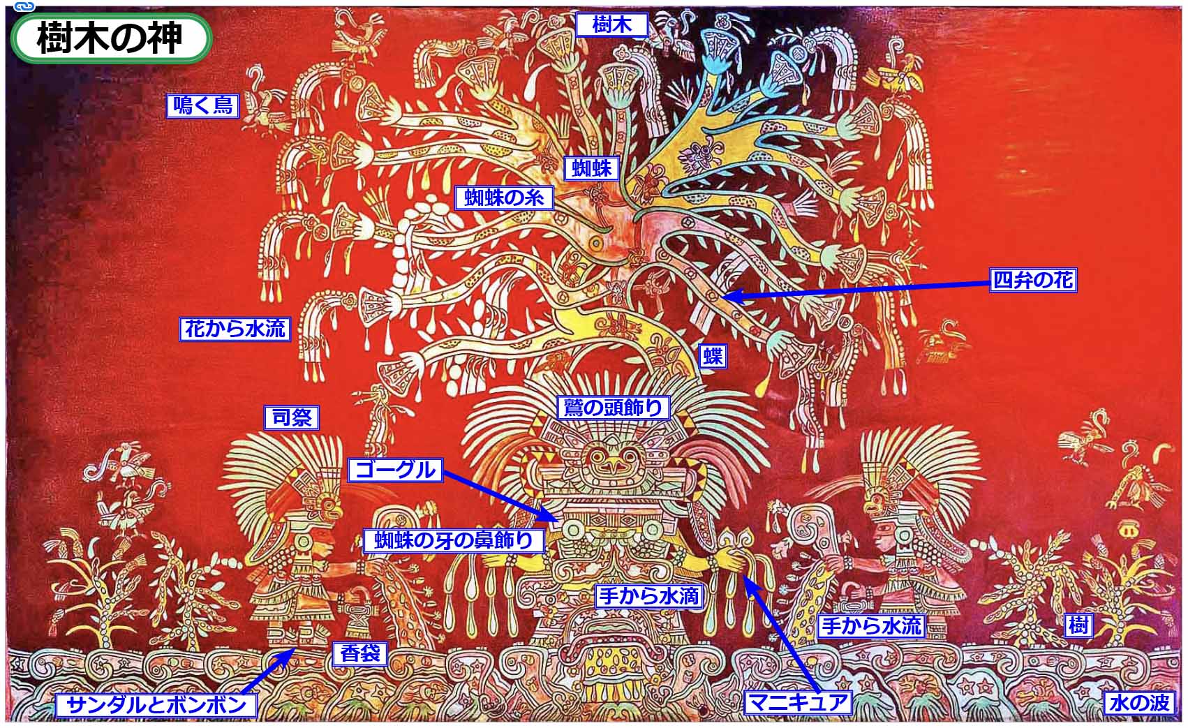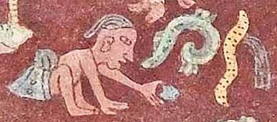 Various small animals gather here. The pompoms on the sandals worn by the priests are Mayan in style.