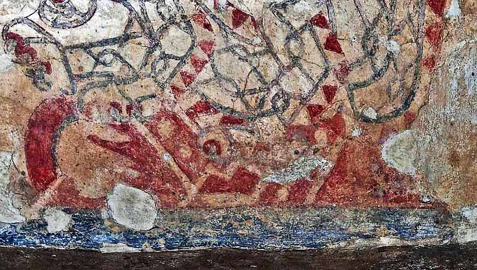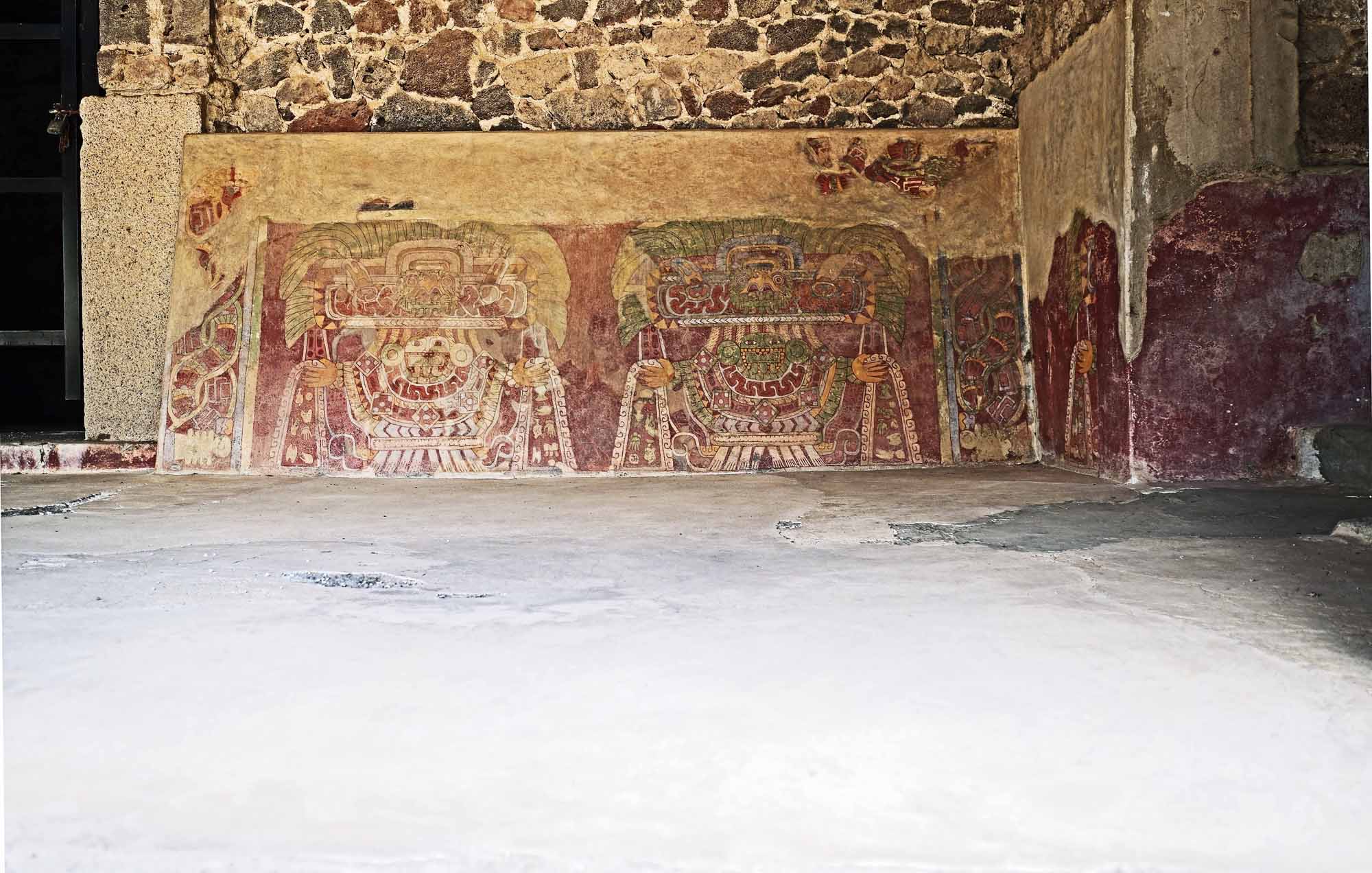 The contents of the eight streams are slightly different. There are also fragments of green traloc on the left and right walls, so it is possible that all the streams were painted differently.