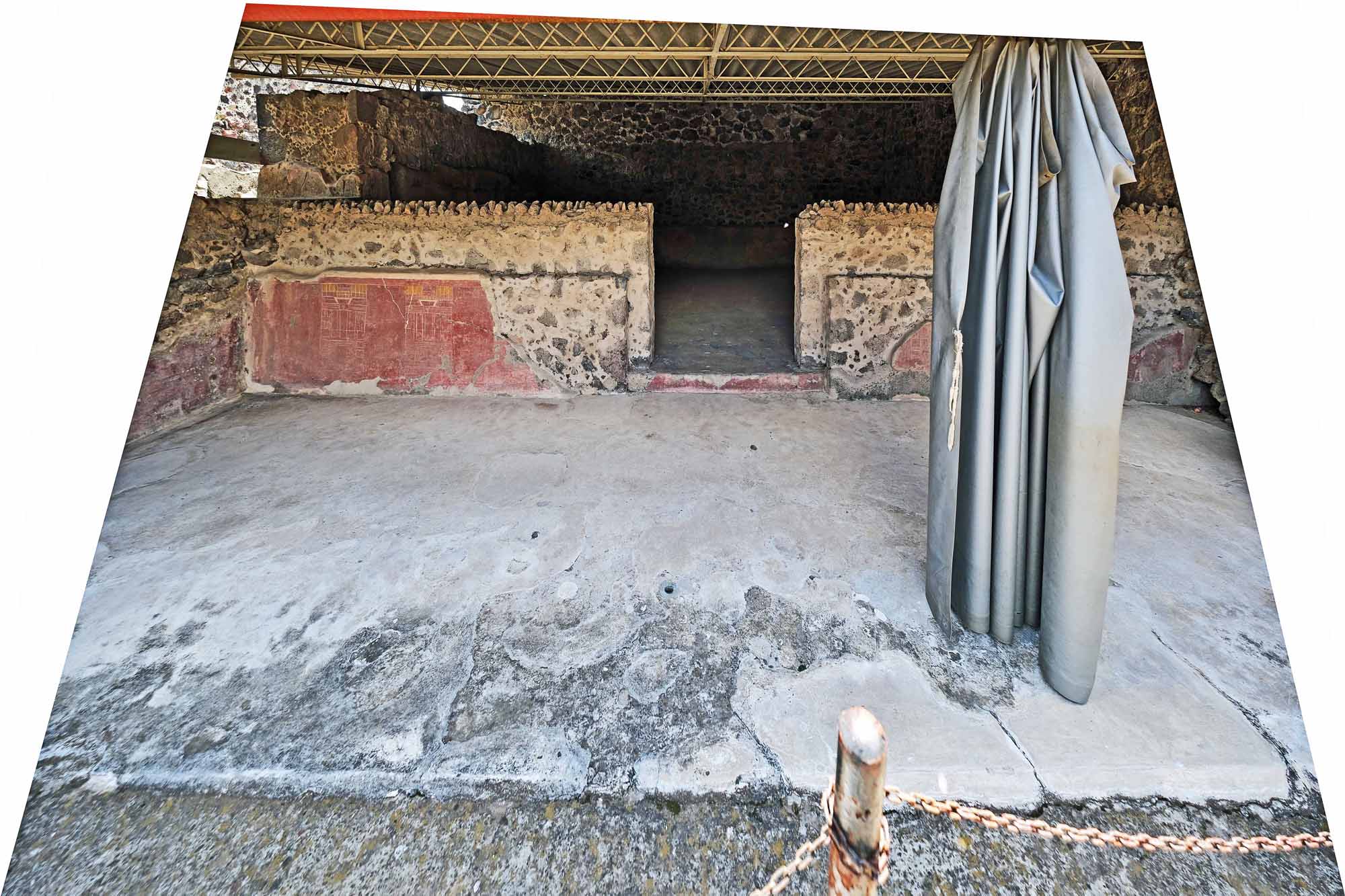 Continue walking, keeping murals 004 and 005 on your left. Now you can see the whole area, but back then it was surrounded by walls and probably had a wooden ceiling/roof, so you had to enter the room to see all the murals.