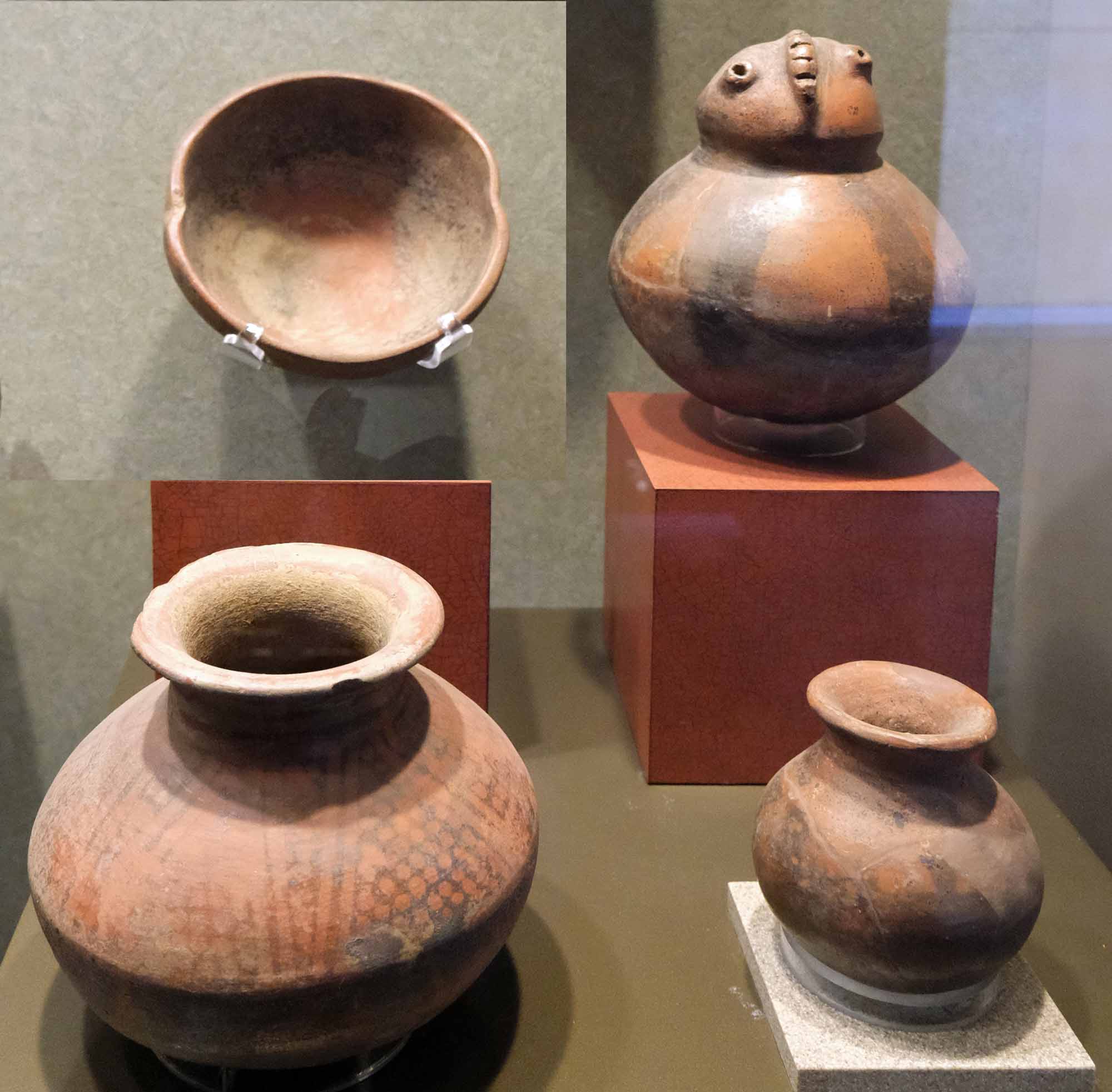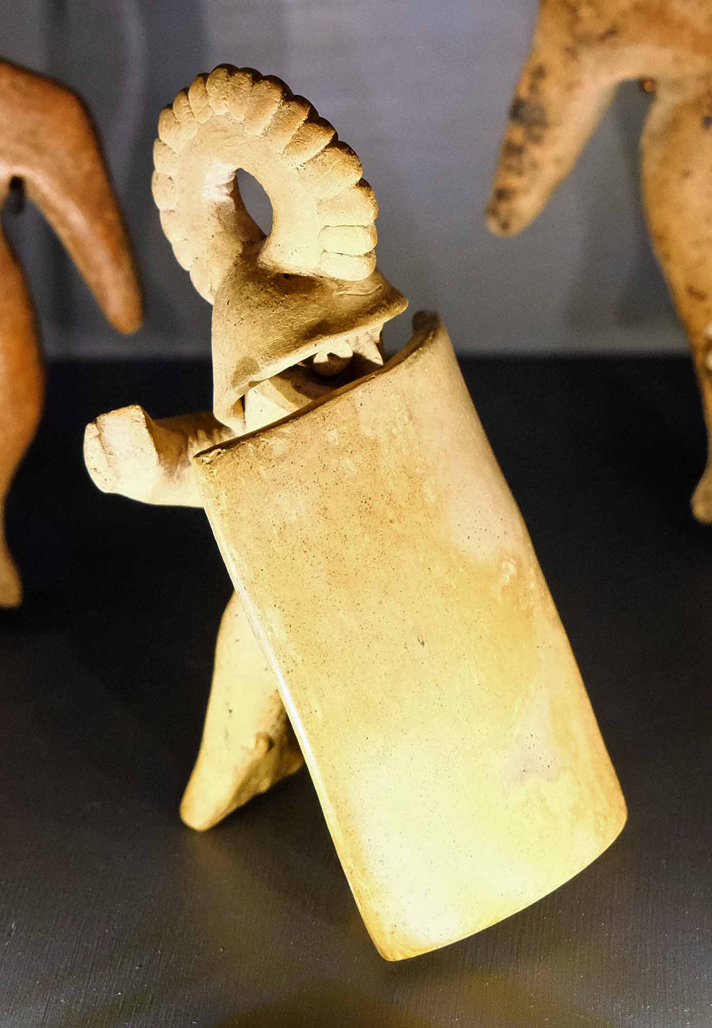 The photo of the pottery below suggests that during rituals/festivals, tree trunks were placed on a circular altar, and people wearing costumes that emphasized their beaks spun around on top of the altar as if flying.